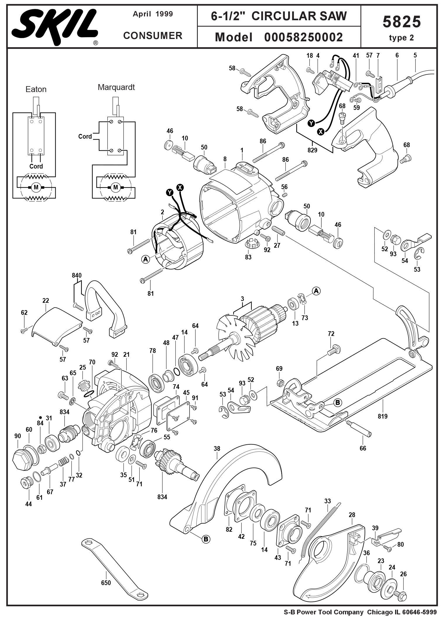 Skil 5825 Type 2 6 1 2in Circular Saw 0005 825 0002 Model Schematic Parts Diagram Toolbarn Com
